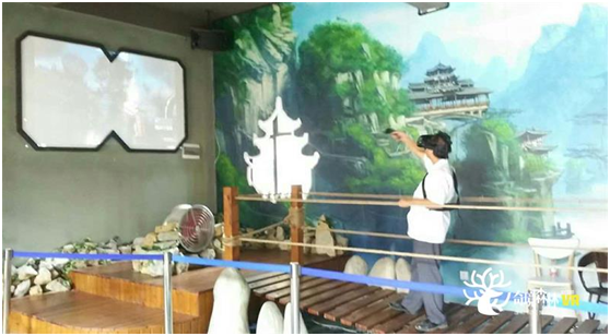 “IP+VR夢回明朝”穿越苗谷吊橋,玩家頭戴VR頭顯手持VR互交器,穿越險峻的吊橋最終與BOOS進行殊死搏斗,同時還設(shè)立了與游戲互動的功能特效,游客在設(shè)立的模擬吊橋上通過搖晃、吹風(fēng)使得體驗感更為驚險刺激。