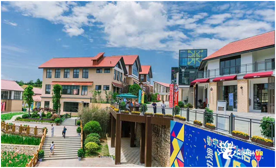 小鎮(zhèn)依山而建,白墻紅瓦、歐式風(fēng)格建筑濃厚,反光式玻璃加上綠化建設(shè)、小木屋,科技感十足的同時又顯悠閑,復(fù)古田園風(fēng)格一覽無遺。