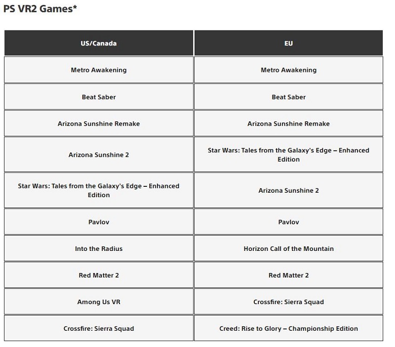 以下是11月份最暢銷的PS VR2游戲完整列表: