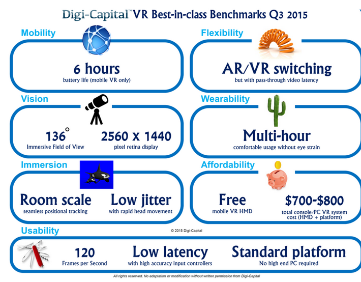 Digi-Capital 上半年發(fā)布的1500億AR/VR市場報(bào)告屢次被行業(yè)引用?,F(xiàn)在他們又發(fā)布了增強(qiáng)現(xiàn)實(shí)和虛擬現(xiàn)實(shí)最佳規(guī)范基準(zhǔn)指標(biāo)。