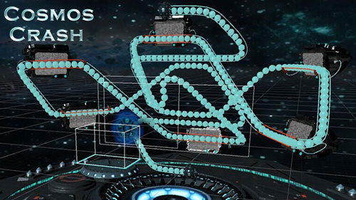 來(lái)到大河有漁,我們首先體驗(yàn)了三款公司團(tuán)隊(duì)制作的VR游戲。第一款游戲的名字是《Cosmos Crash》(星際粉碎),也就是我前面所說(shuō)的VR版祖瑪。我原來(lái)一直對(duì)消除類的游戲特別喜愛(ài),無(wú)論是俄羅斯方塊、魔力寶石還是祖瑪,而VR版的祖瑪給了我一種全新的感覺(jué)。首先,彩色球前進(jìn)的軌道變成了真正的3D軌道,它可以圍繞在你的周圍,而不再是一個(gè)平面的東西;其次,當(dāng)你用Vive的體感控制器指向軌道某處并射出球體時(shí),那種感覺(jué)是非常的自然直接,正所謂指哪打哪,再去想想傳統(tǒng)的祖瑪用鼠標(biāo)來(lái)調(diào)節(jié)射擊方向,真的有點(diǎn)可笑;最后,本作同樣設(shè)計(jì)了各種特殊道具,結(jié)合3D軌道所創(chuàng)造出的可能性和玩法遠(yuǎn)不是平面消除類游戲可比的。瞬間我大腦中就浮現(xiàn)出各種想法,如果俄羅斯方塊也做成一個(gè)VR版會(huì)怎樣呢?