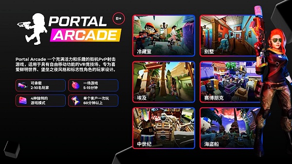 VR ARENA以“大空間自由移動”為特色,打造了9款主題VR游戲與21個動態(tài)地圖,涵蓋競技射擊(PVE/PVP)、喪尸末日、團隊合作、派對游戲等多元類型,最高支持20人同場競技。無論是硬核玩家還是家庭用戶,都能找到專屬樂趣: