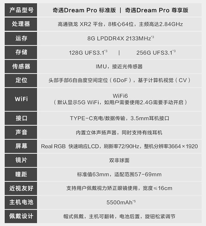存儲方面,奇遇Dream Pro采用的是UFS 3.1閃存,擁有128GB和256GB兩種容量的版本可供用戶選擇,讓用戶可以盡情下載日益豐富的VR內(nèi)容。
