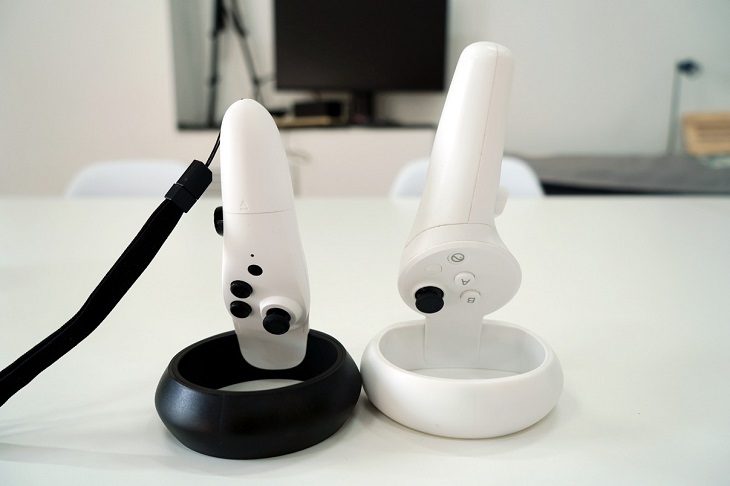 奇遇Dream Pro標(biāo)配2個黑白配色的手柄,造型方面采用了主流的VR手柄設(shè)計,分別需要1節(jié)5號電池進行供電,續(xù)航約15小時。從大小上看,奇遇Dream Pro手柄相比其他品牌要更小巧一些,對于手掌較小的女性和青少年用戶更為友好。實際體驗來說,手柄握持感不錯,整體重量輕巧,按鍵、搖桿與扳機鍵的反應(yīng)靈敏,鍵程設(shè)計合理,保證了用戶在VR中的交互體驗。