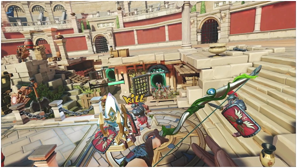 如果有人問(wèn)我,這款被海外主流媒體評(píng)為合格的VR游戲到底是什么樣子?我發(fā)現(xiàn)我很難用一兩句話說(shuō)清楚,因?yàn)樗诤狭怂?、射擊、?dòng)作等多種游戲的元素,感興趣的朋友不妨親身體驗(yàn)一下。張弢告訴我,其實(shí)團(tuán)隊(duì)成員過(guò)去以制作重度射擊游戲見(jiàn)長(zhǎng),其過(guò)去制作時(shí)間最長(zhǎng)的游戲玩法就是打僵尸,作為“打僵尸專業(yè)戶”的團(tuán)隊(duì)在一開(kāi)始卻沒(méi)有選擇做一款僵尸類VR游戲,主要是基于如下考慮。“我們認(rèn)為,優(yōu)秀的VR游戲應(yīng)該有好的交互方式和gameplay(玩法),這樣才配得上VR這樣革新性的技術(shù),所以我們做了一個(gè)決定,我們要做一款開(kāi)放式的VR游戲?!镀婢场肪哂泻軓?qiáng)的橫向擴(kuò)展性,我們并沒(méi)有把它定義成FPS,而是一款Hero-Based(以英雄為基礎(chǔ))的游戲,這有點(diǎn)類似于LOL,雖然我們的規(guī)則完全不一樣,但你會(huì)發(fā)現(xiàn)它們的擴(kuò)展性都很強(qiáng)。每當(dāng)我們靈光一閃,想到一個(gè)新技能的時(shí)候,我們就可以把它包裝成一個(gè)新英雄,然后交給玩家去評(píng)判這個(gè)玩法好不好,如果玩家給出積極的反饋,我們就繼續(xù)發(fā)展下去。”