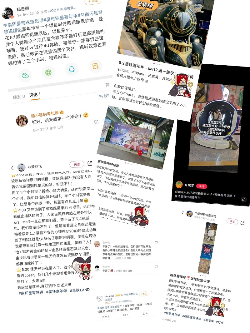 盡管排隊(duì)時(shí)間長(zhǎng)達(dá)兩個(gè)多小時(shí),但這絲毫沒(méi)有減弱星鐵粉絲們參與的熱情。有相當(dāng)多的星鐵粉絲在社交媒體上表示,「印象匹諾康尼」是這次嘉年華中最值得打卡的項(xiàng)目,體驗(yàn)時(shí)長(zhǎng)雖然只有短短的2分鐘多,但VR+運(yùn)動(dòng)座艙帶來(lái)的沉浸式體驗(yàn),令人回味無(wú)窮。