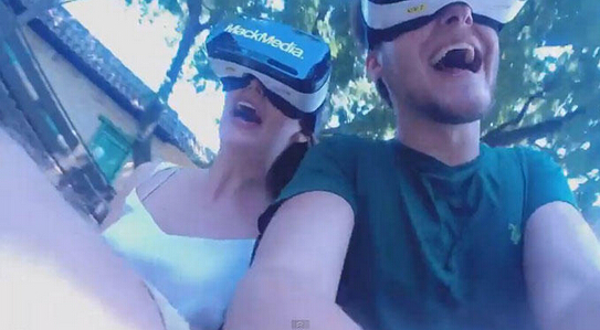 從網(wǎng)絡媒體(Spiegel Online)發(fā)布的視頻可以看見一個主題公園測試體驗。游客戴上虛擬現(xiàn)實頭盔然后坐上過山車,這時呈現(xiàn)在他們眼 前的是一個奇幻的世界,在體驗奇幻世界的同時享受過山車的刺激。四個志愿者戴上Gear vr,坐上云霄飛車(Alpine Express)與奇幻世界 里的卡通人物穿越洞穴,在最后的部分發(fā)現(xiàn)自己其實是騎著一條龍翱翔。另外一個游客體驗的是被一只飛翔的馬拉著經(jīng)過一個城堡和飛上天空。