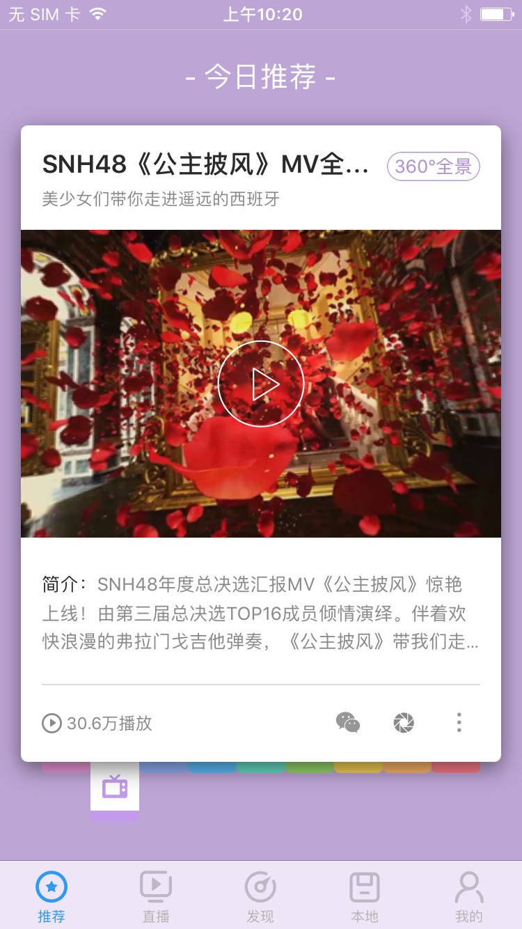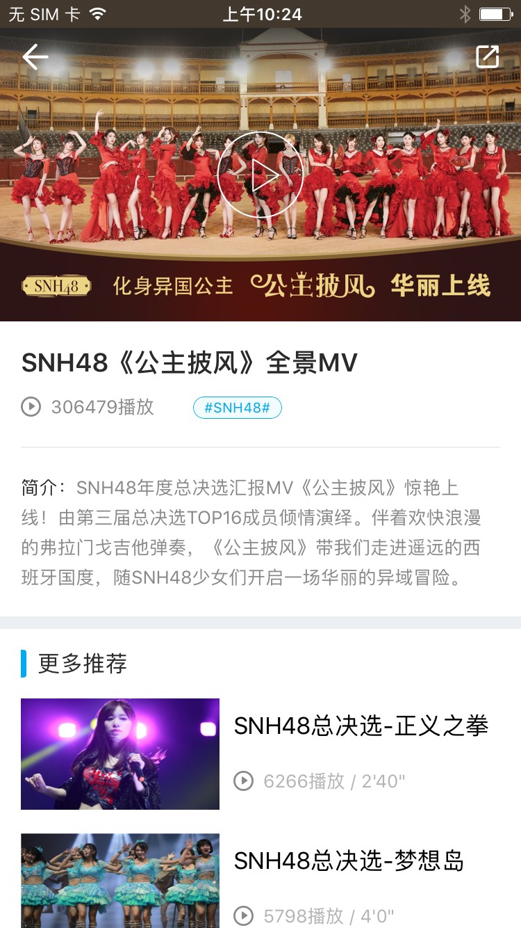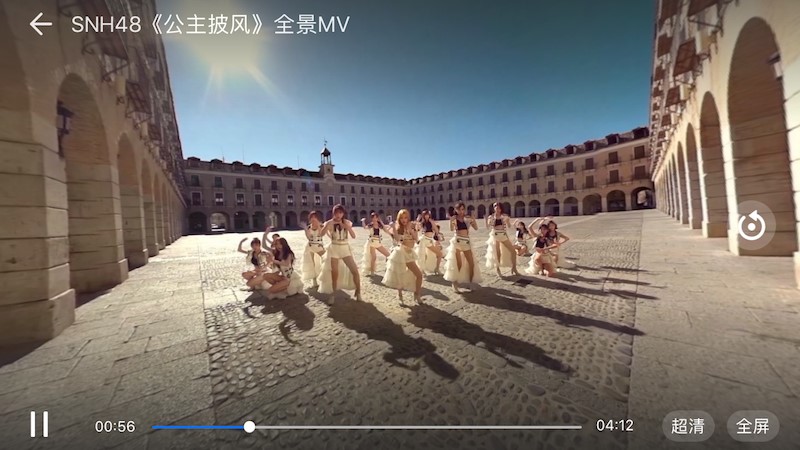最近SNH48的《公主披風(fēng)》VR版MV剛剛上線,在推薦版塊選擇并點(diǎn)擊這部視頻,視頻詳情窗口顯示了該視頻的詳細(xì)信息,點(diǎn)擊播放按鈕,系統(tǒng)提示你將手機(jī)橫放,精彩的內(nèi)容馬上開啟。