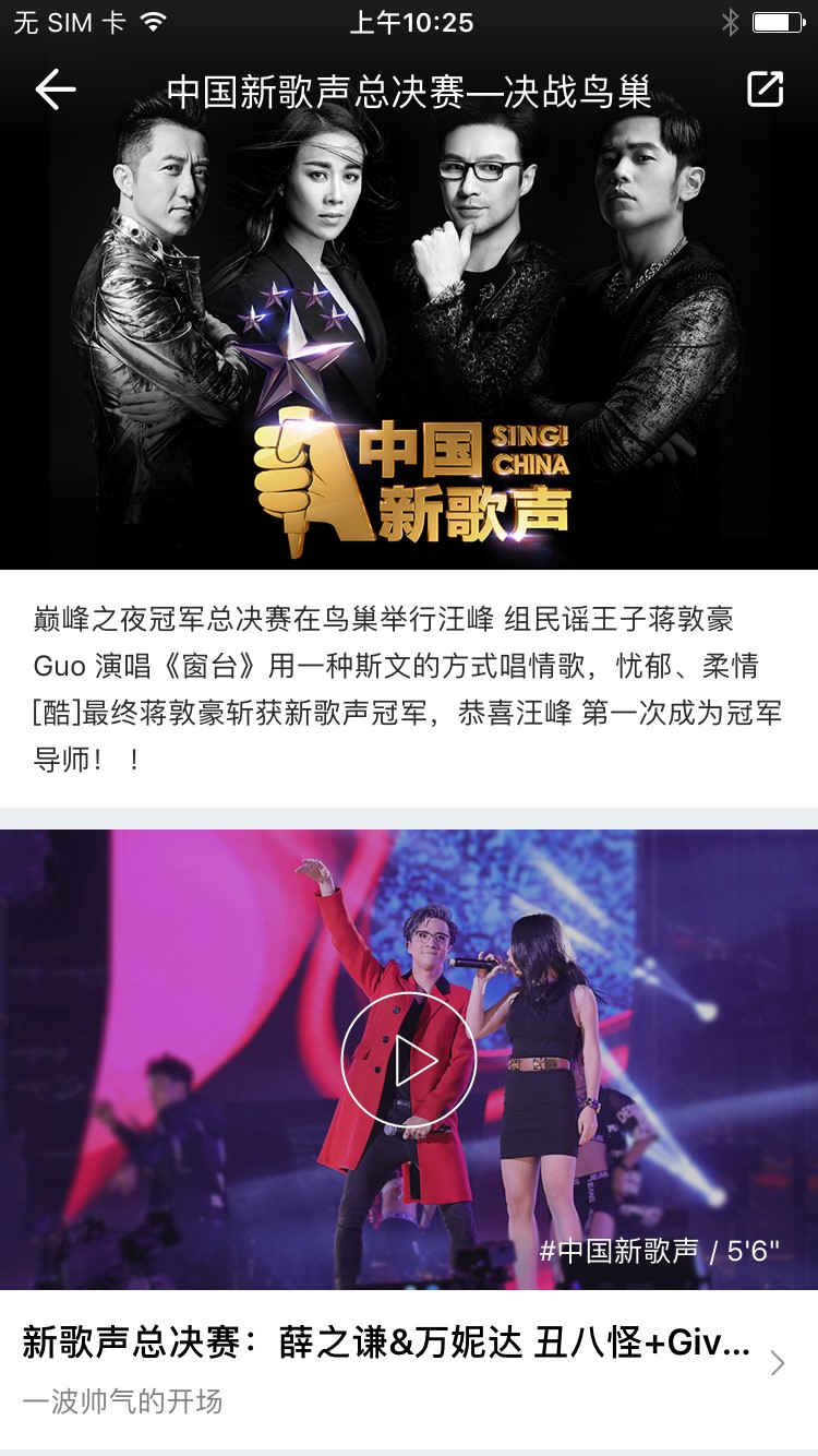 點(diǎn)擊一個(gè)大圖標(biāo),比如說“中國新歌聲”,進(jìn)入這一類內(nèi)容的內(nèi)容窗口,下面顯示了中國新歌聲總決賽直播所包含的所有曲目。如果你之前錯(cuò)過了這場精彩的決賽,或者你想重溫一下美好的鳥巢之夜,那就點(diǎn)擊觀看下面的內(nèi)容吧。