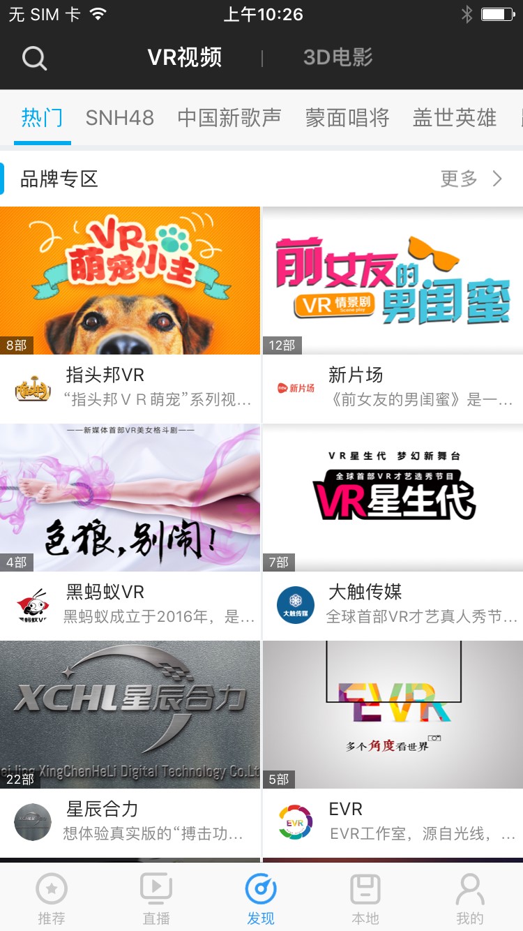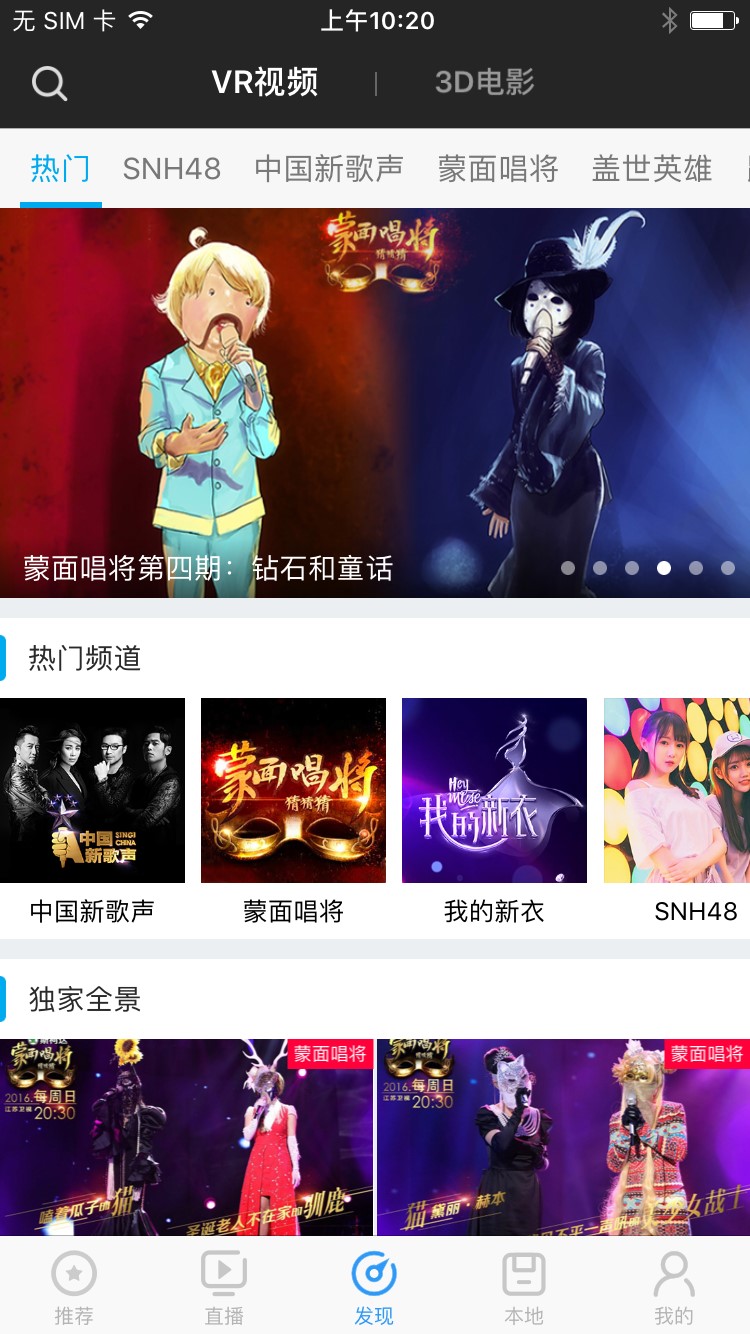 在VR視頻窗口,我發(fā)現(xiàn)用戶可以通過各種方式找到自己感興趣的內(nèi)容,比如說最近正在熱播的《蒙面唱將》,你既可以在窗口上方的小標(biāo)簽中找到,也可以在下面的推薦欄和熱門頻道里找到,當(dāng)然在更下面還有《蒙面唱將》的主題內(nèi)容。在感到方便之余,我自己也覺得稍顯重復(fù),APP界面畢竟不是網(wǎng)頁,所以這里是不是可以再精簡一些呢?