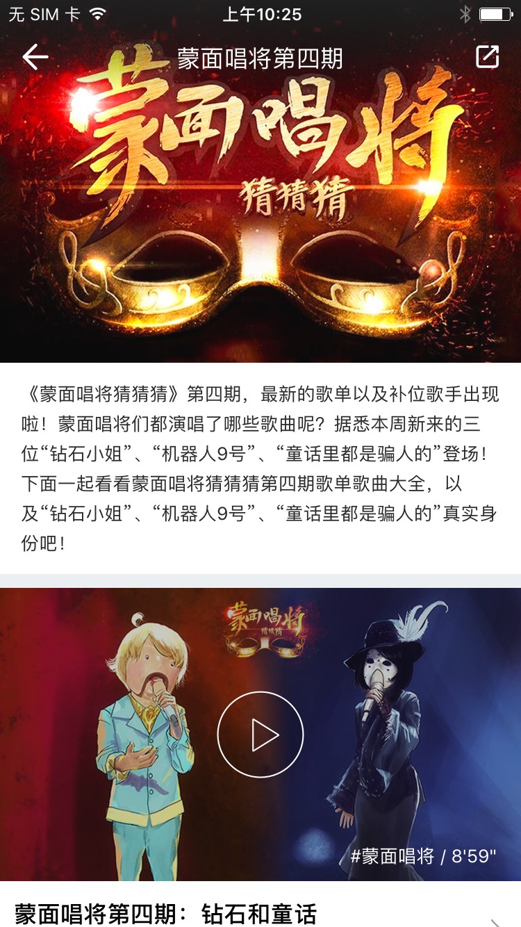 對于某一類的內(nèi)容,比如說《蒙面唱將第四期》,點(diǎn)擊圖標(biāo)即可進(jìn)入進(jìn)入這一類內(nèi)容的內(nèi)容窗口,這里的布局與直播回顧窗口類似,而具體的播放窗口也是一樣的,這里就不多介紹了。