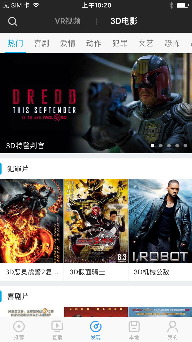 再回到發(fā)現(xiàn)版塊,在窗口上方點(diǎn)擊“3D電影”標(biāo)簽,你會(huì)看到這里有很多3D大片。值得注意的是,在發(fā)現(xiàn)版塊,無論是“VR視頻”和“3D電影”窗口都提供了搜索功能,目前VR內(nèi)容的APP不少,但是有搜索功能的還真不多,用戶想找到自己想看的內(nèi)容非常不方便,現(xiàn)在微鯨VR APP有了搜索功能,這對于愛看片的你來說絕對是一個(gè)好消息。