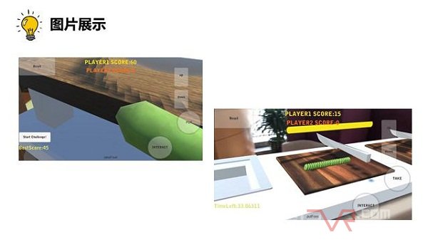 內(nèi)容簡述:VR游戲。玩家扮演一位吃播播主,通過夾取不同食物(魔鬼椒、金槍魚眼睛、毛毛蟲)并吃下,獲得直播彈幕的贊賞與熱度。
