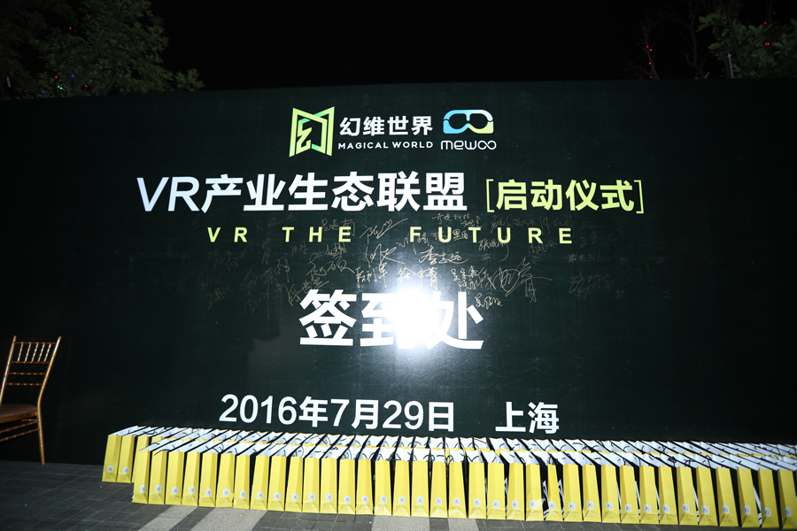 啟動(dòng)儀式在當(dāng)晚21時(shí)開始,幻維世界CEO Aril邀請(qǐng)多位合作伙伴及媒體代表上臺(tái),共同按向大屏幕上的虛擬掌印,宣布VR產(chǎn)業(yè)生態(tài)聯(lián)盟正式啟動(dòng)。