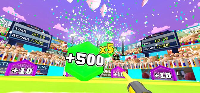 在我們PO出的截圖中,你可以看到一系列不同的游戲場(chǎng)館和得分目標(biāo)——是啊,如果這個(gè)高速移動(dòng)的目標(biāo)可以得2000分,干嘛還要選擇打那個(gè)10分的簡(jiǎn)單目標(biāo)呢?在游戲中,玩家們可以360度旋轉(zhuǎn)來選擇最好的視角,從而做出最精確的投射。