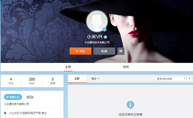 4月16日消息,官方認(rèn)證信息為“小米通訊技術(shù)有限公司”的新浪微博ID“小米VR”今日悄然在微博亮相。
