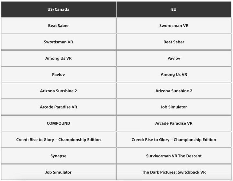 Playstation Store最熱門下載榜每月發(fā)布一次,可讓玩家了解所列出的PS VR2游戲相對于其他游戲的銷售情況。