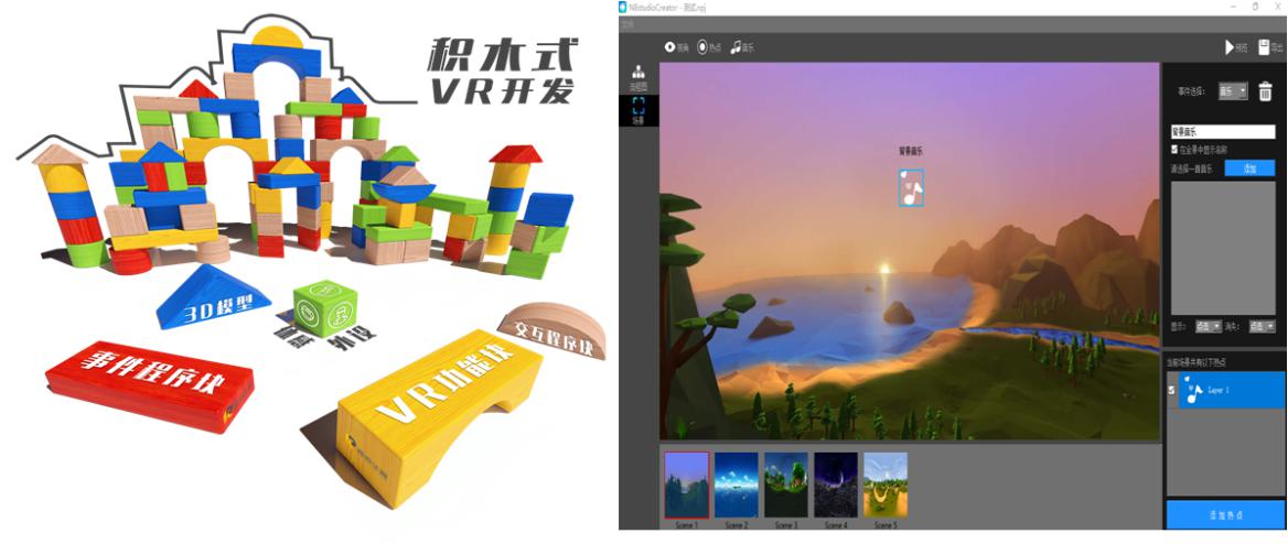 睿誠華智VR積木式開發(fā)模塊和RCreator工具,屏蔽了底層代碼,讓中小學(xué)生通過拖、拉、拽等操作制作出VR內(nèi)容。產(chǎn)品在設(shè)計上,既可以面向初級用戶完全屏蔽底層代碼,又可以對有興趣深入的學(xué)生提供代碼編輯的功能,滿足不同學(xué)生的興趣和需求。