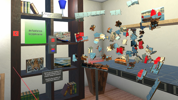 「Jigsaw Puzzle VR」是一款拼圖類VR益智游戲,該作支持玩家隨時隨地在虛擬空間里拼圖。