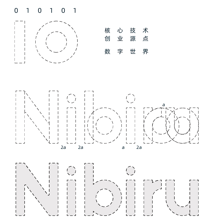 我們還為Nibiru的英文字體做了全新的設(shè)計(jì),以我們的核心競(jìng)爭(zhēng)力研發(fā)技術(shù)為源點(diǎn),采用數(shù)字世界基本元素“1、0”為靈感,創(chuàng)作出全新Nibiru字樣。傳遞出在歷經(jīng)了多年的行業(yè)沉淀后,睿悅變得更為穩(wěn)重、嚴(yán)謹(jǐn)、規(guī)范。在筆畫拐角處我們使其變得圓潤(rùn),符合時(shí)代個(gè)性,且表達(dá)出睿悅對(duì)于外界的友好態(tài)度。