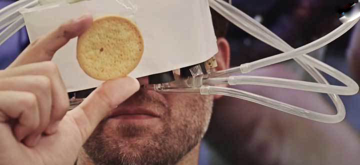 所有短片中最令人印象深刻的展示是一段十分鐘的記錄片,Klose戴上一個更加復(fù)雜的虛擬現(xiàn)實頭戴設(shè)備,這可以改變他手上的曲奇的樣子,也給他的鼻子傳達(dá)了對應(yīng)的香味。一個普通的曲奇在實驗中突然變成了一個更甜的檸檬曲奇。這意味著將來可能有一天,一個相似的裝置可以讓我們食用無聊卻健康的食物,例如芹菜棒,并且讓他們吃起來像更美味的食物。Narumi以他的原型為基礎(chǔ)的小工具也可能用來使電視節(jié)目中的氣味和味道變得真實,或者是讓醫(yī)院食物更好吃。