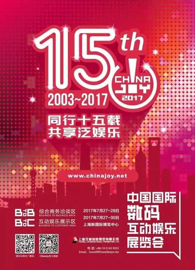 第十五屆中國國際數(shù)碼互動娛樂展覽會(ChinaJoy)將于2017年7月27日至7月30日在上海新國際博覽中心隆重舉辦。本屆ChinaJoy,恰逢十五周年盛典,以“同行十五載,共享泛娛樂”為主題,盛裝呈現(xiàn)我國泛娛樂產(chǎn)業(yè)發(fā)展的最新成果,展示民族優(yōu)秀品牌,提升中外交流合作水平,為參展參會的中外企業(yè)、媒體、專業(yè)觀眾和廣大玩家提供更加專業(yè)性、國際性和權(quán)威性的互動交流的廣闊空間。