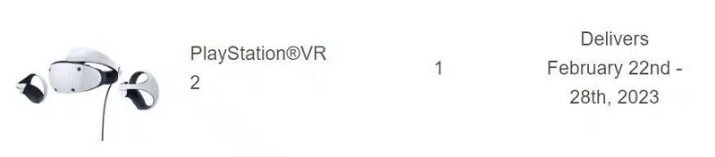 預(yù)購訂單顯示,PSVR 2交貨期為2023年2月22日至2月28日期間,索尼在本月初宣布了PSVR 2的發(fā)布日期以及550 美元的起價(jià)。