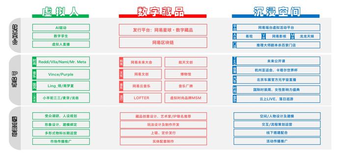 目前,網(wǎng)易在AI&XR、云服務及存儲、虛擬人開發(fā)及運營、區(qū)塊鏈平臺、虛擬沉浸活動、VR實景娛樂、虛擬社交、虛擬演出等多個技術及產品領域均有布局。