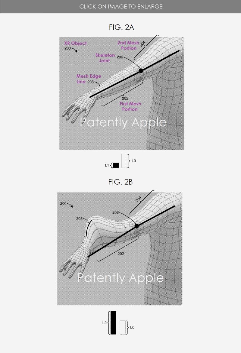 這項(xiàng)蘋果專利涵蓋了XR環(huán)境下修改XR對(duì)象顯示的系統(tǒng)和方法,在某些實(shí)施例中,該方法包括獲得與XR對(duì)象骨架相關(guān)聯(lián)的第一網(wǎng)格部分和第二網(wǎng)格部分;第一網(wǎng)格部分和第二網(wǎng)格部分在位于骨架上的骨架接頭處耦合。而在某些實(shí)施例中,該方法包括檢測(cè)第一網(wǎng)格部分和第二網(wǎng)格部分的組合以滿足聯(lián)合遙測(cè)標(biāo)準(zhǔn)。