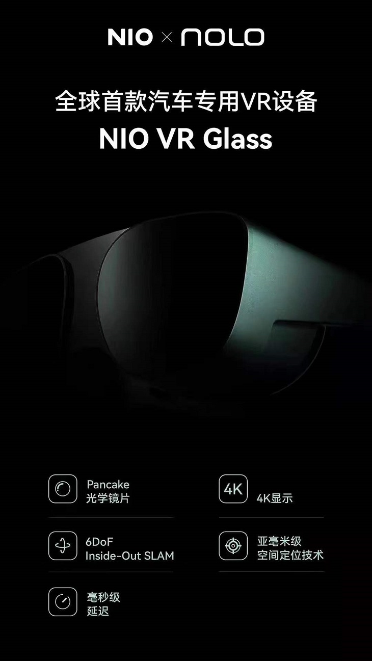 2021年12月19日,蔚來(lái)宣布聯(lián)合NOLO推出全球首款汽車專用VR設(shè)備——NIO VR Glasses, 該眼鏡采用超薄Pancake光學(xué)方案,可實(shí)現(xiàn)雙目4K顯示、6自由度、Inside-Out 亞毫米級(jí)空間定位,具有使用便捷,低功耗,高環(huán)境適應(yīng)性的特點(diǎn),實(shí)現(xiàn)了毫秒級(jí)延遲,能輕松為用戶打造出全新車載影音娛樂(lè)空間,這是NOLO在移動(dòng)應(yīng)用場(chǎng)景下做出的極大突破,未來(lái)NOLO也將會(huì)繼續(xù)和各大汽車廠商一起探索VR在車載上使用場(chǎng)景,起于娛樂(lè),但不止娛樂(lè),未來(lái)車載VR將會(huì)有更多可能。