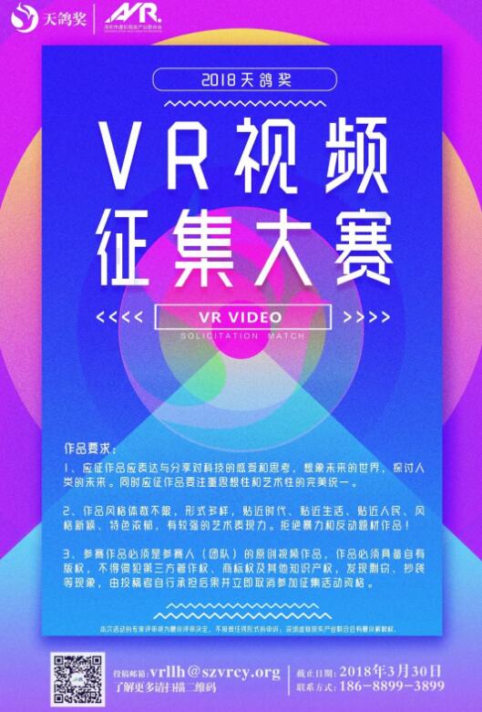 為促進(jìn)中國(guó)VR/AR/MR/AI技術(shù)在影視領(lǐng)域的應(yīng)用,以及探討高新技術(shù)與傳統(tǒng)影視產(chǎn)業(yè)發(fā)展融合的新模式,深圳市虛擬現(xiàn)實(shí)產(chǎn)業(yè)聯(lián)合會(huì)將于2018年4月10日上午在深圳會(huì)展中心簕杜鵑廳舉辦2018全球VR/AR/MR/AI跨界融合影視論壇,將邀請(qǐng)行業(yè)大咖于論壇進(jìn)行交流。同期舉辦“天鴿獎(jiǎng)”VR視頻大賽原創(chuàng)視頻啟動(dòng)儀式。