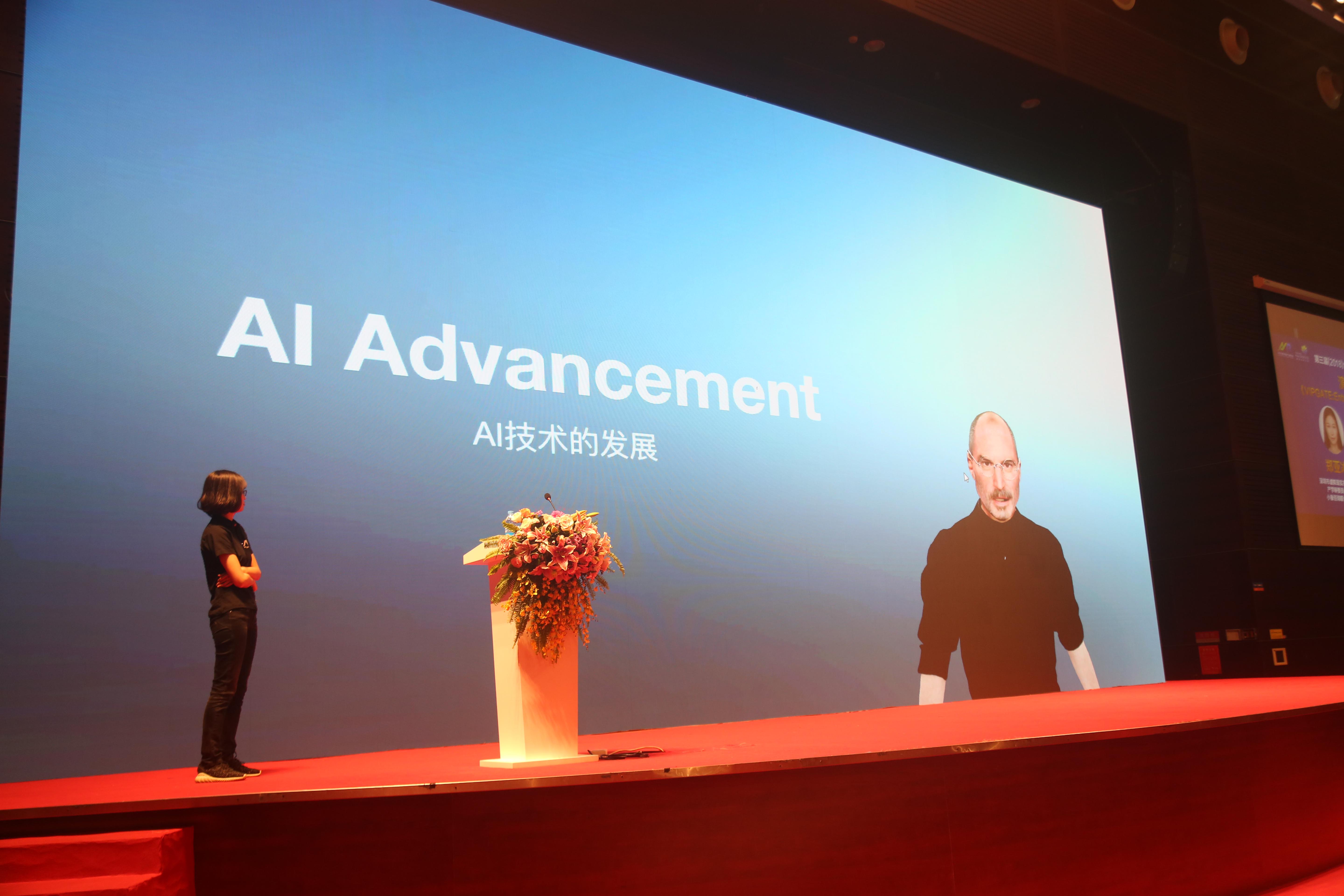 10日上午,在論壇現(xiàn)場(chǎng),一個(gè)令人不可思議的場(chǎng)景出現(xiàn)了:隨著Vipgate平臺(tái)演示者鄭亞冰博士的導(dǎo)入,主席臺(tái)的大屏幕上居然出現(xiàn)了蘋果公司聯(lián)合創(chuàng)辦人蒂夫?喬布斯的影像,并且現(xiàn)場(chǎng)與鄭亞冰博士對(duì)換、互動(dòng)起來,完全就是兩個(gè)老朋友之間的實(shí)時(shí)視頻通話;觀眾們都驚呆了,因?yàn)榇蠹叶贾?,史蒂?middot;喬布斯早在2011年就已經(jīng)去世,但在屏幕中,他卻仿佛穿越了時(shí)空身臨現(xiàn)場(chǎng)一般。