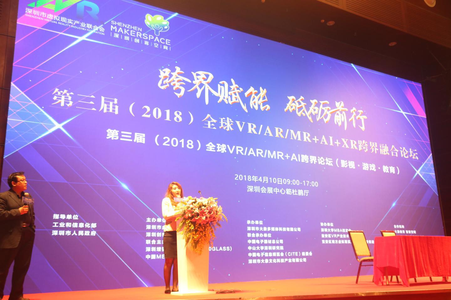 由國(guó)家工信部和深圳市人民政府指導(dǎo),深圳市虛擬現(xiàn)實(shí)產(chǎn)業(yè)聯(lián)合會(huì)暨深圳創(chuàng)客空間主辦,中國(guó)MBA聯(lián)盟、深圳增強(qiáng)現(xiàn)實(shí)技術(shù)有限公司(0glass)聯(lián)合主辦,深圳市大象多媒體科技有限公司承辦,以“跨界賦能,砥礪前行”為主題的“第三屆(2018)全球VR/AR/MR+AI+XR跨界融合論壇”,昨日在深圳會(huì)展中心5F簕杜鵑廳成功舉辦。此次論壇聚焦影視、游戲、教育等產(chǎn)業(yè)發(fā)展中的關(guān)鍵共性問題,展示了VR/AR/MR+AI+XR最新成果以及對(duì)行業(yè)應(yīng)用的推動(dòng)作用。幾百位來自行業(yè)內(nèi)的學(xué)者、專業(yè)人士共聚一堂,共話VR/AR/MR+AI+XR的跨界融合發(fā)展。