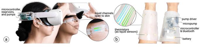這些“局部刺激劑”由硅膠貼片和微型泵組成,可佩戴在身體的任何部位,并在與皮膚接觸后會散發(fā)出五種不同的化學(xué)物質(zhì),其中辣椒素是在辛辣食物中發(fā)現(xiàn)的一種關(guān)鍵化學(xué)物質(zhì),可用于模擬熱感,另一方面,薄荷醇被用于模擬寒冷的感覺。