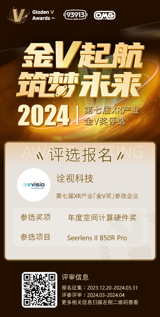 金V啟航,筑夢未來!誠摯歡迎業(yè)內優(yōu)秀企業(yè)踴躍報名參選2024XR產業(yè)「金V獎」,同時也讓我們共同期待這場屬于每一位在XR產業(yè)執(zhí)著前行的夢想者的年度盛典。