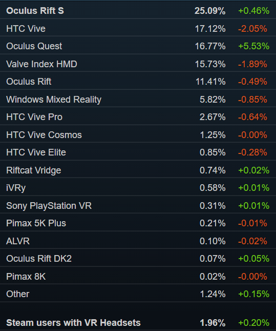 備受我們關(guān)注的「V社VR套件(Valve Index)」回歸TOP10,拿下第六名。Steam 1月硬件和軟件調(diào)查報(bào)告顯示,Valve Index的最新份額為14.36%(-1.43%),但依然是該平臺(tái)活躍度最高的PC VR頭顯。