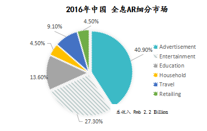 國(guó)內(nèi)全息AR市場(chǎng)相較于國(guó)際市場(chǎng)發(fā)展緩慢,但細(xì)分賽道眾多,市場(chǎng)蓬勃飛升指日可待。由橫向比較從2016年經(jīng)匯率換算為3億美元,占全球市場(chǎng)規(guī)模的8.3%到2020年預(yù)測(cè)34.2億美元,占全球市場(chǎng)規(guī)模的9.2%,增速較緩。而進(jìn)行縱向比較,國(guó)內(nèi)市場(chǎng)規(guī)模由2016年的3.13億美元增長(zhǎng)到2018年的10億美元,兩年的增長(zhǎng)率高達(dá)220%。而據(jù)推測(cè)其爆發(fā)性增長(zhǎng)階段將以2020年為起點(diǎn),且在今后5年內(nèi)不斷攀升,形成增量市場(chǎng)。