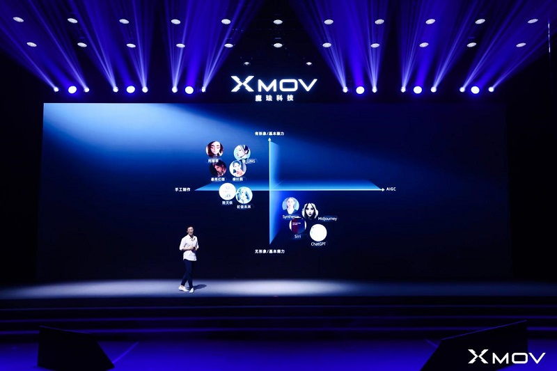 發(fā)布會上,在柴金祥教授的分享中,他將虛擬人分為橫縱兩個軸,縱軸代表是否有形象,橫軸是AIGC與純手工制作的區(qū)別。也代表著目前虛擬人賽道的兩類公司,影視動畫MCN公司或是AIGC相關領域的公司。