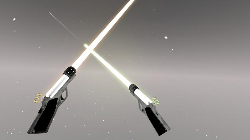 此外,Niel Widy還在游戲中添加了激光線切割線障礙,玩家需要一邊揮砍與射擊,一邊通過側(cè)身、匍匐等動作來靈活躲避這些激光線的攻擊。