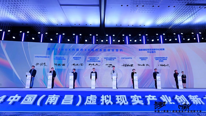 開幕式期間,多家企業(yè)還舉行了隆重的產(chǎn)業(yè)合作簽約儀式,涉及基于Linux內(nèi)核的XR操作系統(tǒng)項目、國家虛擬現(xiàn)實創(chuàng)新中心檢測平臺項目、龍旗AI筆記本電腦生產(chǎn)基地暨終端數(shù)字智能工廠項目、虛擬現(xiàn)實神經(jīng)系統(tǒng)疾病康復(fù)與干預(yù)平臺項目、東微電子半導(dǎo)體設(shè)備研發(fā)生產(chǎn)項目、凌宇智控(NOLO)全球總部等。