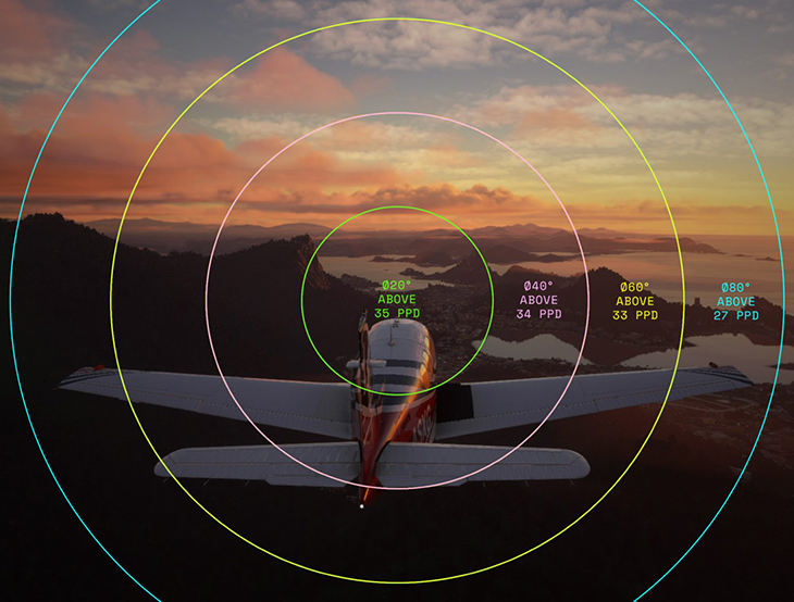 值得一提的是,Aero并未搭載“仿生顯示器”(在視場(chǎng)中心提供視網(wǎng)膜分辨率),同時(shí)也沒有透視AR功能。即便如此,得益于先進(jìn)的光學(xué)設(shè)計(jì)和非球面透鏡,Aero依然創(chuàng)造了令人驚嘆的35 PPD超清晰峰值分辨率(甜蜜點(diǎn)),遠(yuǎn)超當(dāng)前任何其他同類產(chǎn)品。