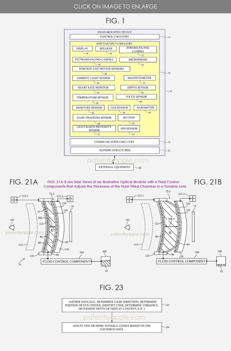 蘋果發(fā)明涉及未來HMD,其可能包括頭戴式支撐結(jié)構(gòu)、耦合到頭戴式支撐結(jié)構(gòu)并包括折反射透鏡和可調(diào)透鏡的鏡頭模塊、以及可通過鏡頭模塊觀看的顯示器。
