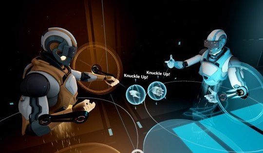 這個(gè)新的虛擬現(xiàn)實(shí)作品的戰(zhàn)斗模式中, 玩家需要躲避并且反射飛盤(pán)來(lái)?yè)魵?duì)手。 手上的飛盤(pán)可以用來(lái)阻擋對(duì)方或者射向?qū)Ψ健?/span>