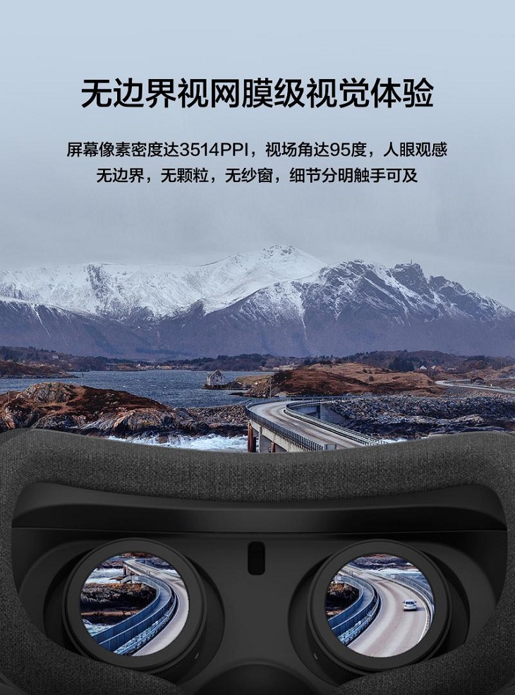 雙眼分辨率為5120*2560,PPI高達(dá)3514,基本從硬件層面杜絕了紗窗效應(yīng),清晰度前所未有。