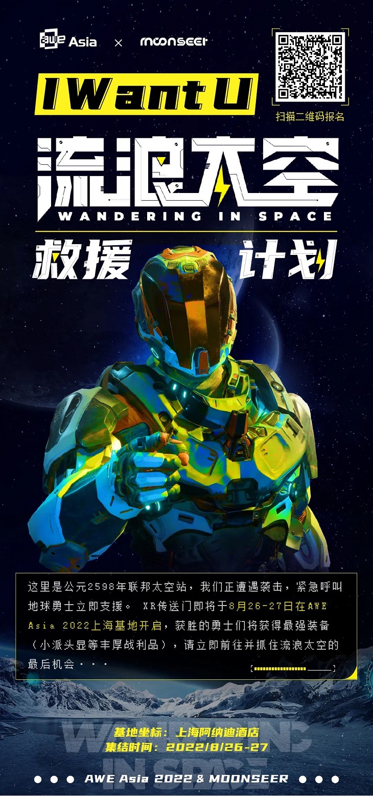 今年,MOONSEER將贊助AWE Asia 2022大會(huì)娛樂區(qū)(AWE Playground),為現(xiàn)場觀眾帶來前所未有的太空VR游戲體驗(yàn)。