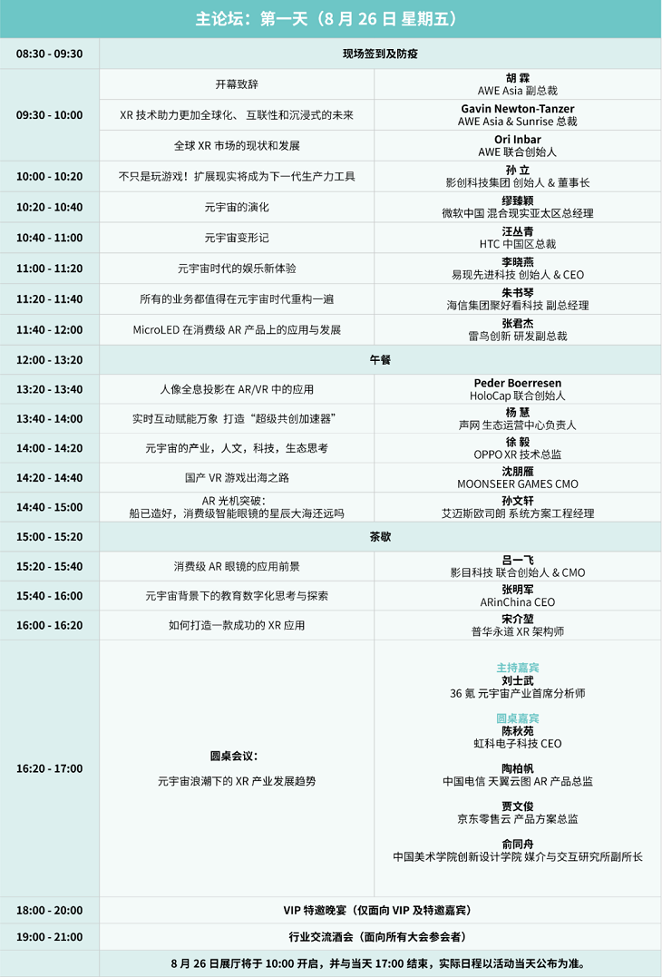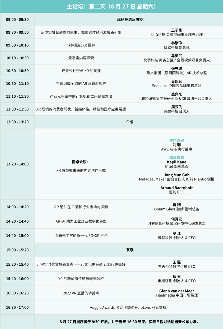除了流光溢彩的主論壇演講、各大展商新產(chǎn)品發(fā)布外,AWE Asia 2022還將設(shè)置「XR優(yōu)投計(jì)劃」「XR賦能醫(yī)療」「RTE+XR」分論壇,XR行業(yè)權(quán)威獎(jiǎng)項(xiàng)-Auggie Awards和AWE Asia 娛樂區(qū)VR游戲大賽等精彩環(huán)節(jié)。