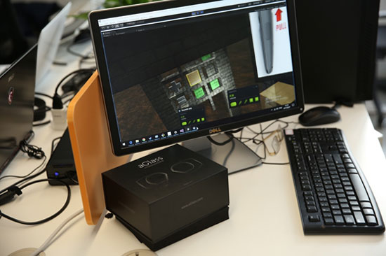 在充滿未來感的上下兩層的場(chǎng)地中,每組都可以擁有自己的工作臺(tái)、測(cè)試用vr ready電腦及一套VR頭顯設(shè)備。