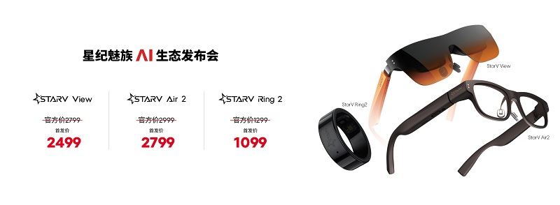 作為星紀魅族旗下的全新智能終端品牌,StarV在星紀魅族AI生態(tài)發(fā)布會上正式推出三款新品,包括AR智能眼鏡StarV Air2、StarV View以及智能指環(huán)StarV Ring2,為用戶帶來全新的智能穿戴體驗。