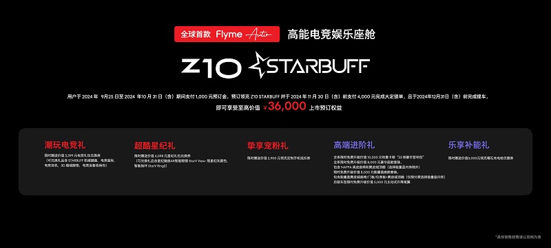 發(fā)布會上,星紀魅族與領(lǐng)克聯(lián)合打造的Z10電競定制版車型正式上市,分為Z10 STARBUFF 95kWh 766km和Z10 STARBUFF 95kWh 680km后驅(qū)版兩個配置,零售指導(dǎo)價分別為24.28萬元、32.98萬元;上市限時價分別為23.68萬元、31.88萬元。11月30日前完成大定鎖單,并于12月31日前完成提車的用戶可享受上市限時價。