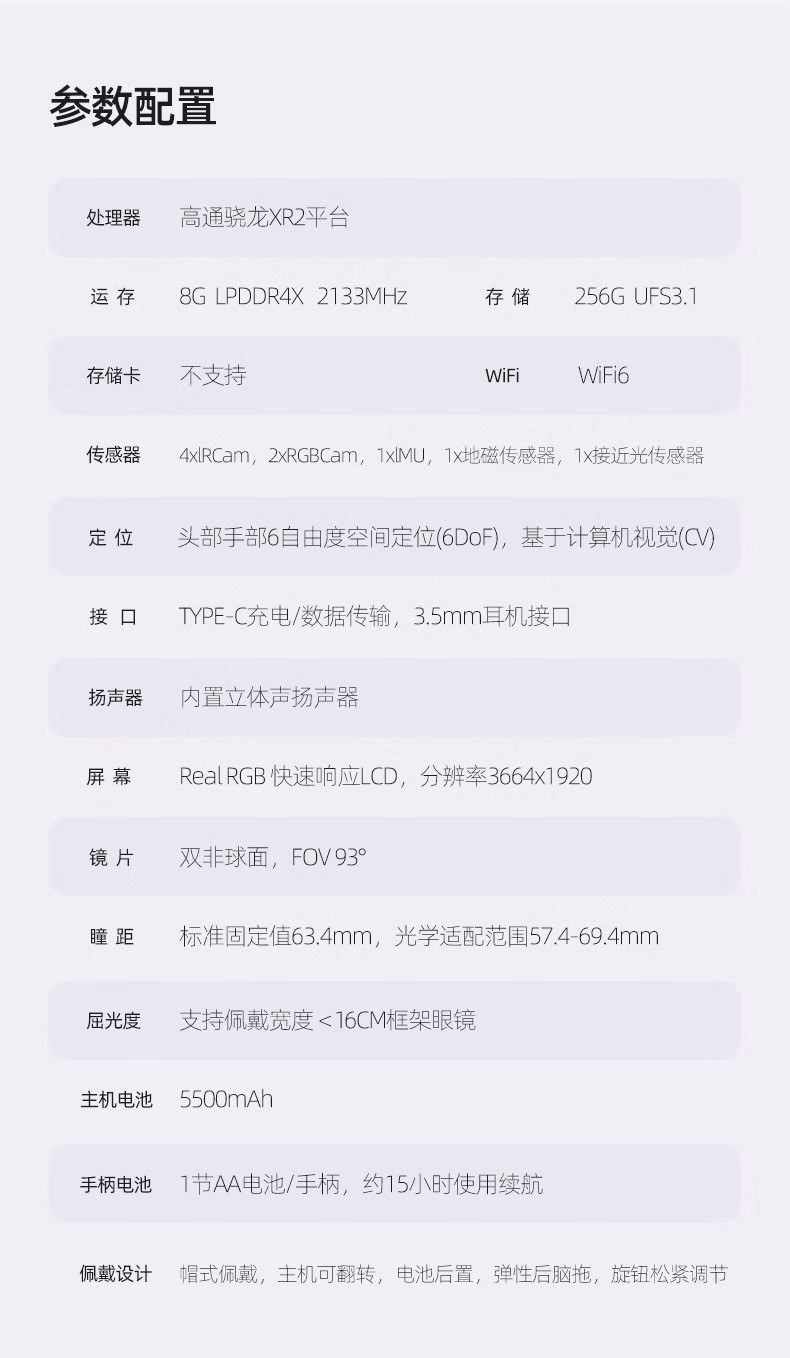 硬件方面,奇遇MIX依舊沿用高通旗艦級XR處理器——驍龍XR2,運行主流游戲毫無壓力;標配8+256GB存儲,用戶可以將自己愛玩的游戲都保存進去;主機配備兩顆1600萬像素透視專用全彩攝像頭,搭載雙目全彩透視技術(shù)實現(xiàn)與真實世界直接交互,即通過相機捕捉到實時畫面,將虛擬世界和真實世界合成后,呈現(xiàn)多種色彩的顯示畫面,對周圍物體和自身移動的感知也更精確,視覺偏差、畸形更小。
